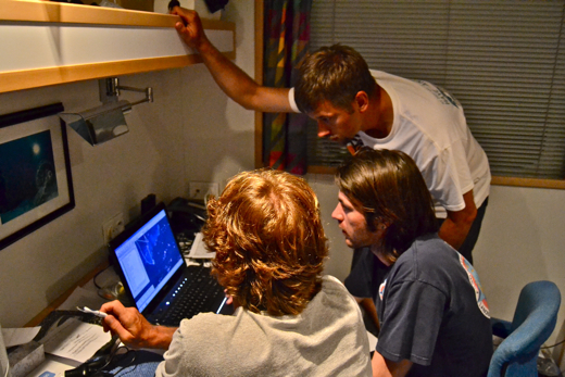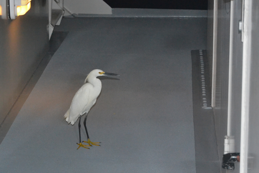 We have an observer from the Colombian Navy aboard and he went ashore this morning with team member Judy Pacheco, who is along to study the region’s seabirds. On most days, she goes out on the main dive boat and while everyone else is on the bottom, she’s topside with her binoculars out. She’s seen seven species, like royal terns, frigate birds, and the snowy egret that landed on the ship and took a stroll down one of the hallways.